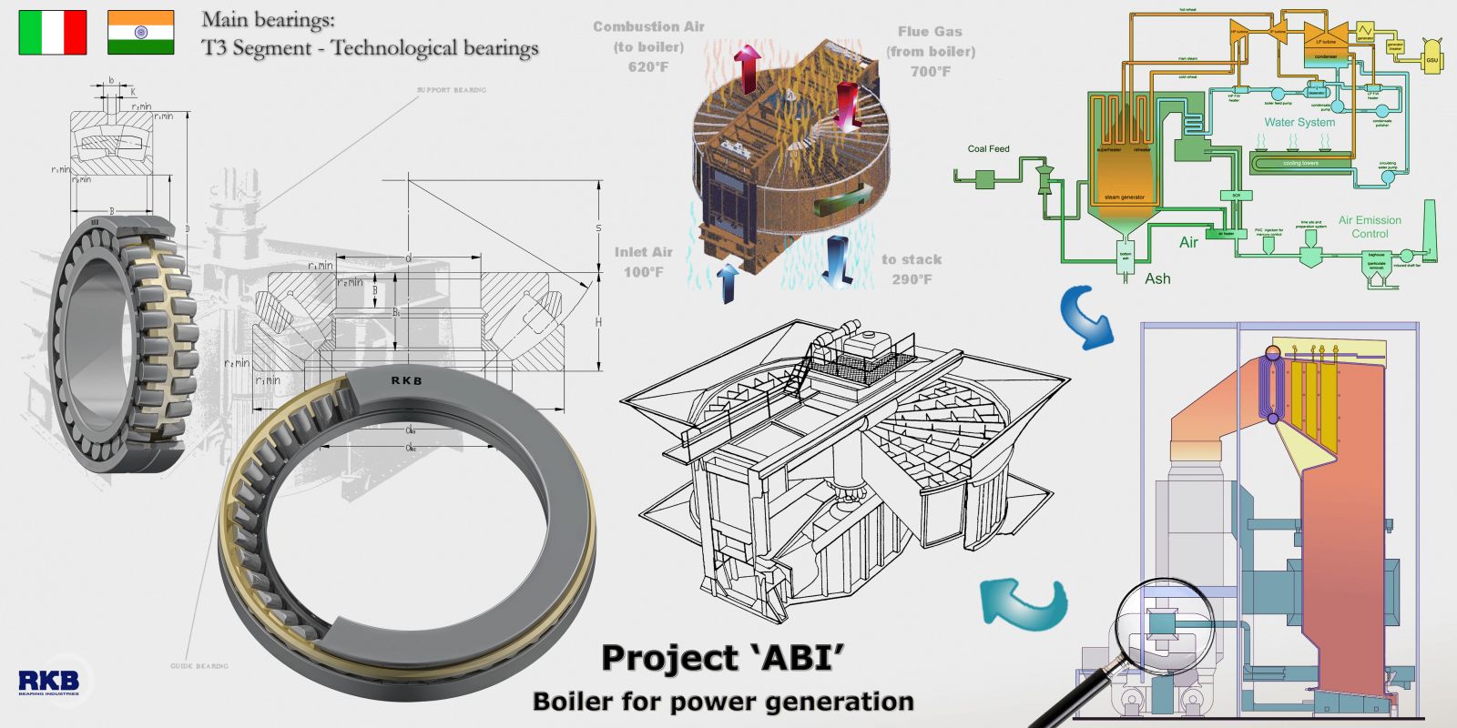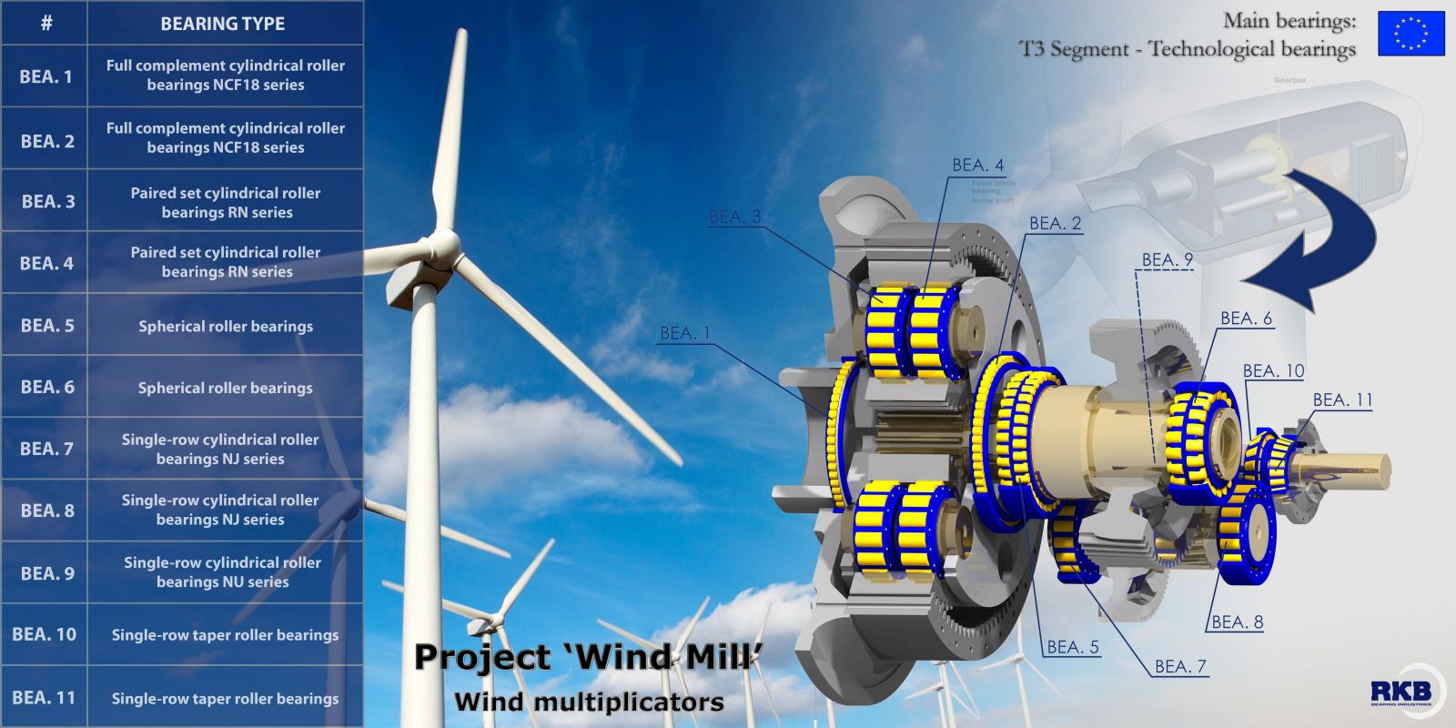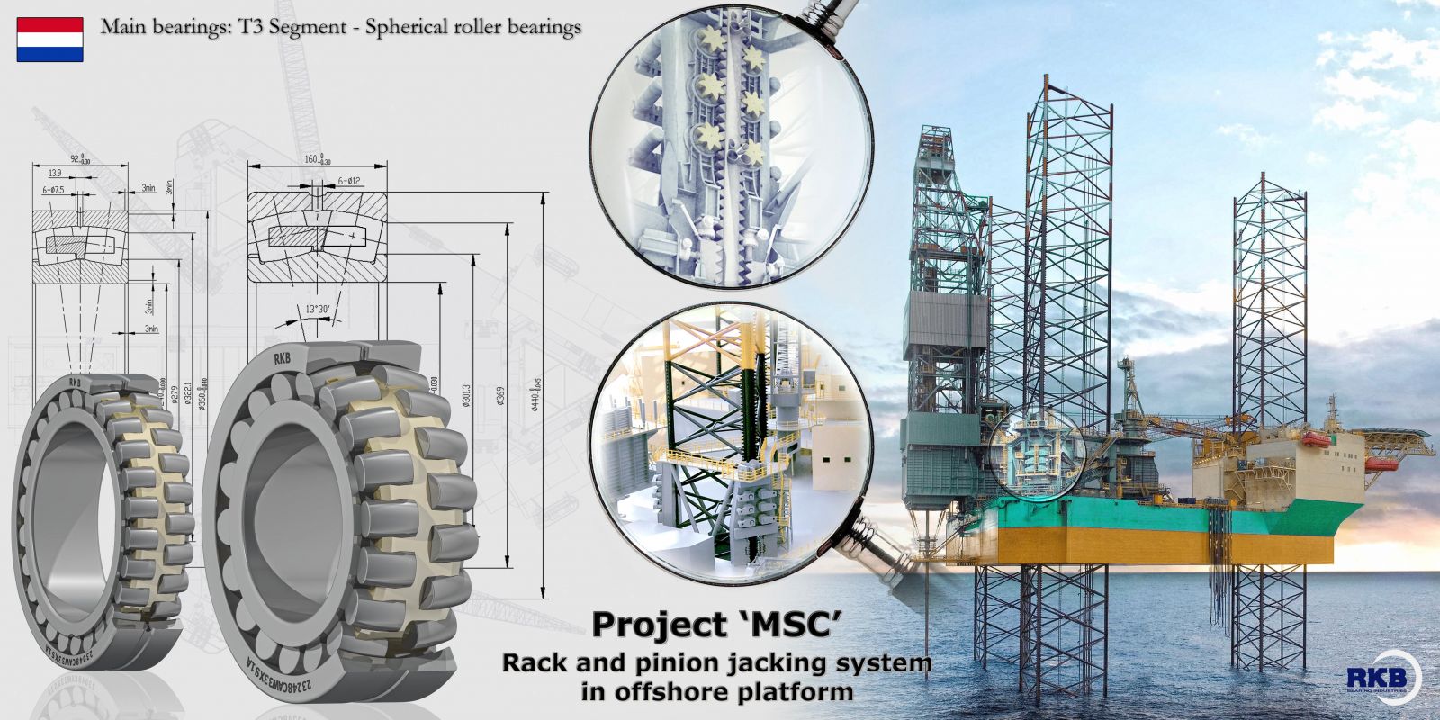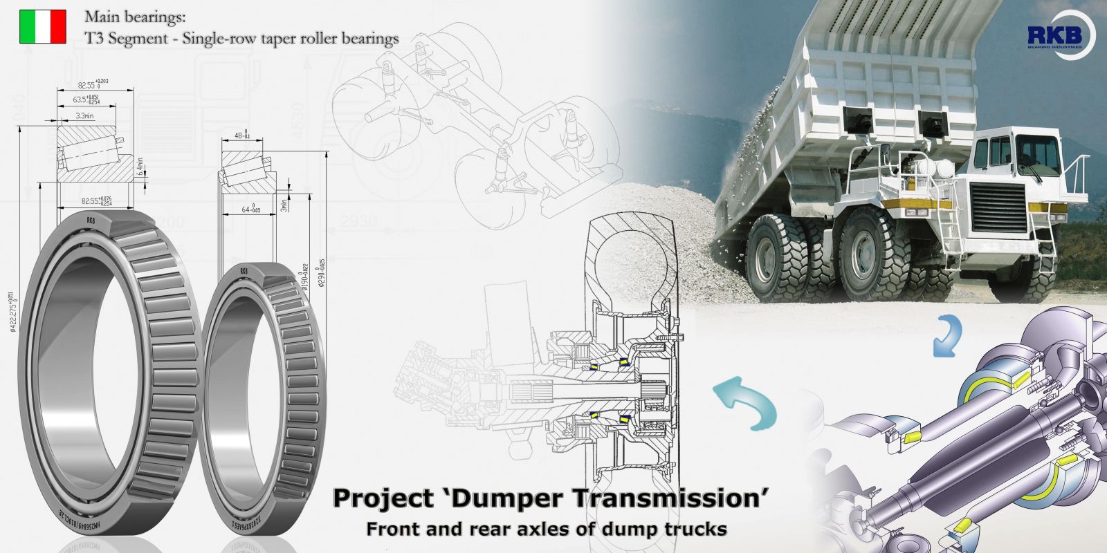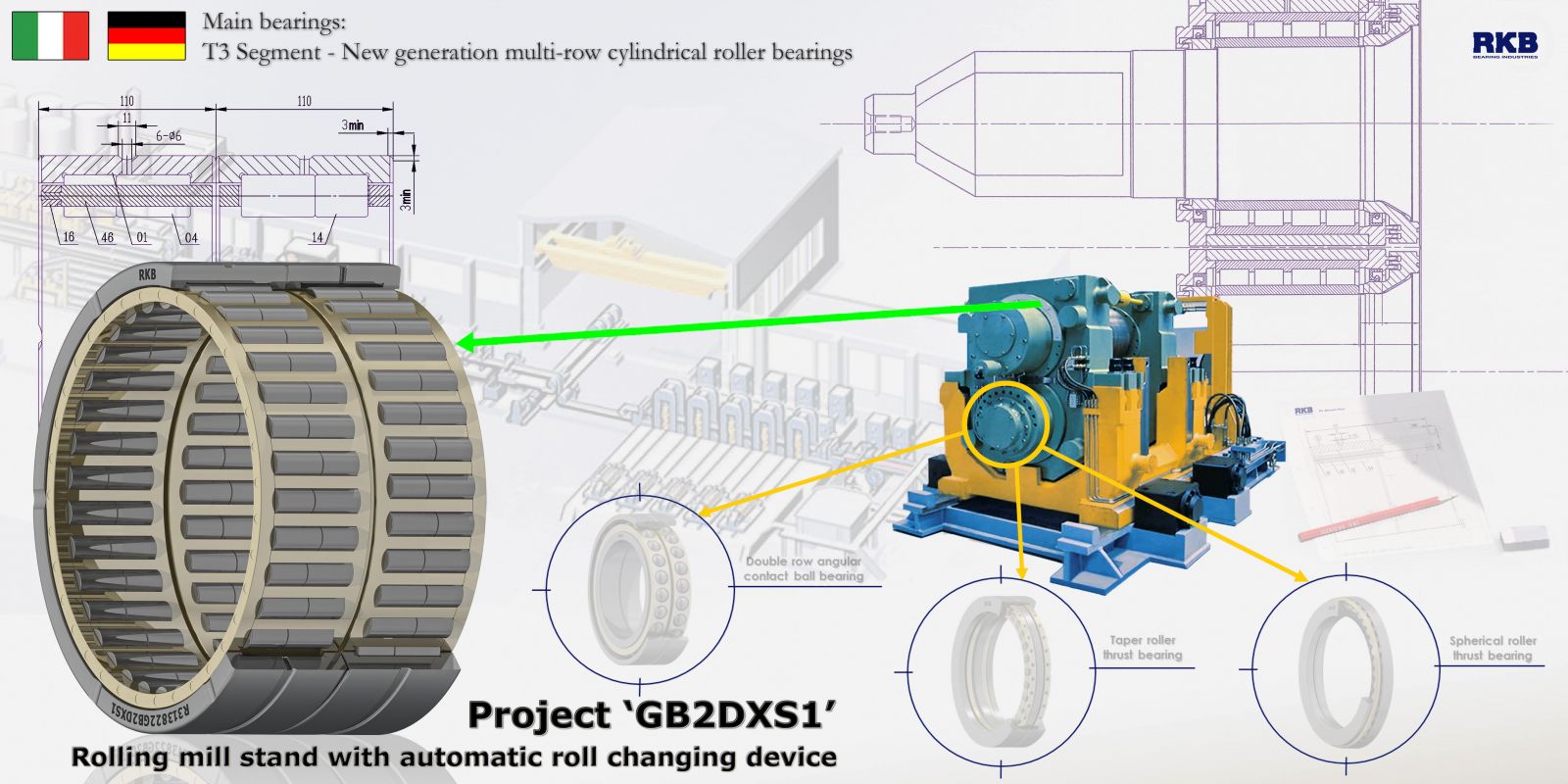 Группа RKB разрабатывает уникальные подшипники для сталелитейного производства и тяжелого машиностроения, а также подшипники, предназначенные для работы в тяжелых и критических условиях: в горнодобывающей промышленности; на буровых и тоннелепроходческих машинах; в судостроении и на морских буровых установках; на подъемных мостах; в гигантских редукторах ветровых турбин; в целлюлозно-бумажной промышленности; в большегрузых автомобилях и другой специальной внедорожной технике.